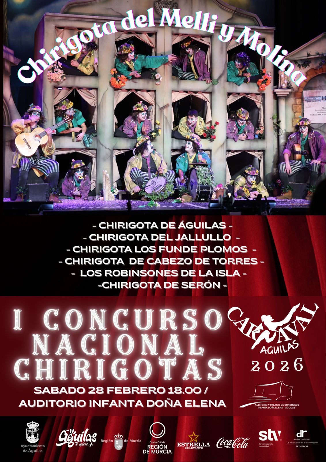 El concurso, que tendrá lugar en el Auditorio “Infanta Doña Elena”, dará comienzo a las 18:00 horas y contará con la participación de un total de seis agrupaciones. Como broche de oro al evento, recibiremos a una agrupación invitada llegada desde Cádiz: la chirigota de El Melli y Molina, que en este 2026 llevan en escena su tipo “Los que la tienen de mármol”, poniendo el cierre a una cita que refuerza el vínculo del Carnaval de Águilas con hacer un carnaval para todos los gustos.