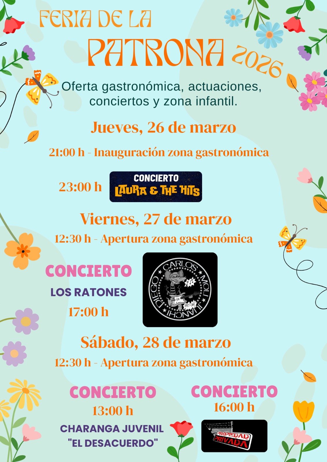 Las actividades continuarán el sábado 28 de marzo con nuevas propuestas musicales y festivas. A las 13:00 horas tendrá lugar un pasacalles y la actuación de la charanga juvenil “El Desacuerdo” en la carpa instalada en la calle Balart.