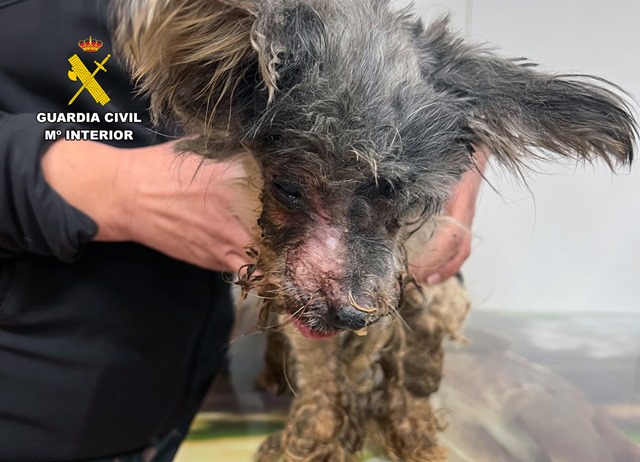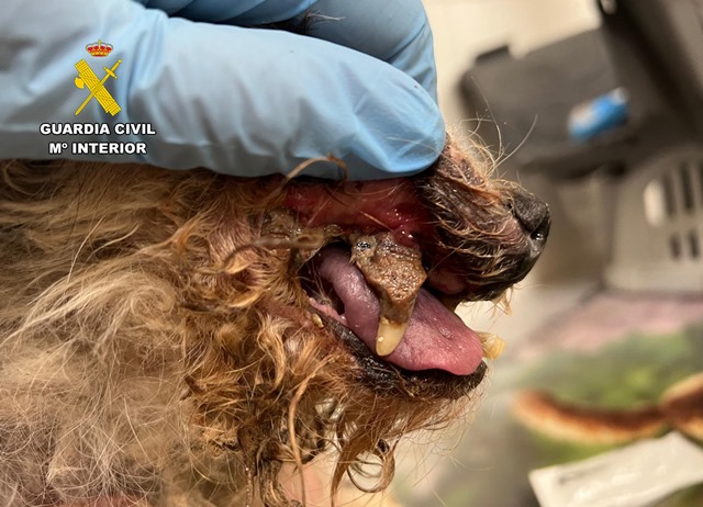 Los guardias civiles instruyeron diligencias por delito contra los animales, por abandono animal. Debido a la falta de asistencia, el can tuvo que ser ingresado urgentemente en un hospital veterinario. El informe veterinario reflejó que el animal mostraba un pelaje muy deteriorado, con nudos y suciedad acumulada, indicativos de falta de mantenimiento higiénico prolongado, con acumulación de suciedad (excrementos).